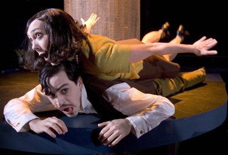 Pjäsen som sådan är mer som en...ja, vi väljer att kalla den tillställning. Eller det är ju faktiskt en kabaré, och det känns som att en viss gammal 30-talskänsla har försökt återskapas. Härligt sjuk Monty Python-stämning.